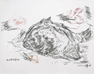 Hamburg macht sich gut da, gleich direkt neben dem Kamin. „So habe ich meine Heimatstadt beim Nachmittagskaffee immer im Blick“, schwärmt Erika Holzhäuser. Sie zeigt auf ihr Lieblingsmotiv des Künstlers Oskar Kokoschka, betrachtet dann die vielen weiteren Grafiken ihrer Sammlung. „Nur für den Fisch“, sagt sie, „blieb letztlich einfach kein Platz mehr.“ 1961 war es, als Kokoschka bei einem Hamburg-Besuch nicht nur die Stadtsilhouette, sondern auch „den Fisch“ zeichnete, genauer gesagt den „Urvater der Fische“*: Eine kraftvolle Farblithografie auf Büttenpapier, von der Erika Holzhäuser ein Exemplar besaß. Nun hat sie uns als langjähriges Freundeskreis-Mitglied von Hinz&Kunzt das Werk zum Versteigern geschenkt.