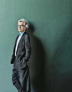 Gut 30 Jahre ist das jetzt her und nun sitze ich ihm plötzlich gegenüber. Er ist älter geworden und ich bin älter geworden, aber nur nach der Zahl der Jahre, die seither verstrichen sind. Wim Wenders jedenfalls ist ein spannender Querkopf geblieben, der noch nie eine banale Fernsehserie abgeliefert hat, der sich nicht in Talkshows blicken lässt. Dazu passt, dass er heute zu seinem recht eleganten, schwarzen Anzug coole, blaue Turnschuhe mit dicker Sohle trägt.
