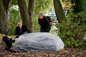 Immer wieder erlebt sie, dass sich Menschen für „ihren Obdachlosen“ verantwortlich fühlen und sie regelmäßig unterstützen: „Mit Kaffee, Brötchen, jeden Tag zwei Euro – fast wie Paten.“ Aber auch Passanten fühlten sich zuständig und mischten sich ein, wenn die „Straßenvisite“ mit den Obdachlosen Kontakt aufzunehmen versuche, und das oft recht forsch. „Das kann schwierig werden, weil sie glauben, sie müssten einschreiten, weil sie den Widerstand spüren im Verharren der Obdachlosen. Wir müssen dann viel erklären, das kann schon nervig sein.“