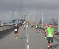 Schietwetter, aber egal: Tausende Hamburger haben auch in diesem Jahr wieder beim Köhlbrandbrückenlauf mitgemacht. Beim Joggen konnten sie obendrein Gutes für andere tun, denn wer wollte, hat auf der Strecke ein Spendentor passiert.