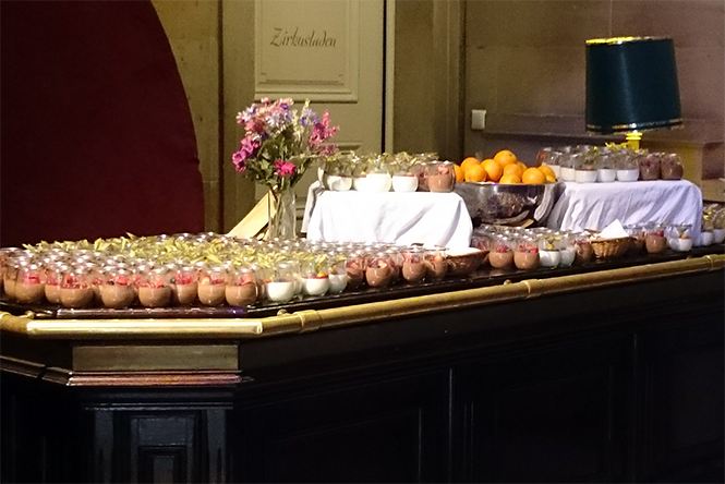 Aber auch Spinne ist auf der Rückfahrt wieder wohlgestimmt. Denn nach der Bühnenshow ging es hinüber zum Buffet in die Villa Mignon. Und nicht nur das schmuckvolle Gebäude, sondern auch das Essen beeindruckte die Gäste. „Die Auswahl war hervorragend“, sagt Verkäufer Jörg. Tatsächlich bot das Buffet alles, was das Herz begehrt: Antipasti, Salate, vegetarische Schnitzel, marinierte Schweinesteaks und zwei hervorragende Desserts. „Das war auf alle Fälle der krönende Abschluss auf einen gelungenen Tag“, befand Jörg.