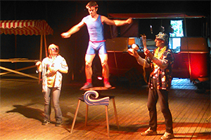Verkäufer Jan jongliert in dem Zirkuszelt.