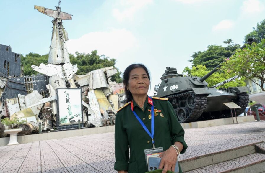Die Bauerntochter Pham Ti Lu meldete sich mit 17 Jahren freiwillig bei der nordvietnamesischen Volksarmee. „Wir jungen Mädchen wollten unser Land gegen die Amerikaner verteidigen“, sagt sie bei einer Trinkpause im Park der Gedenkstätte zu Ehren des Nationalhelden Ho Chi Minh. „Onkel Ho“, wie er im Volksmund genannt wird, rief 1945 die Unabhängigkeit der Demokratischen Republik Vietnam aus. 20 Jahre später trat Pham Ti Lu ihren Freiwilligendienst an. Neun Jahre lang sanierte sie die zerbombten Straßen und Wege des Ho-Chi-Minh-Pfades, der die nordvietnamesischen Truppen im Schutz hoher Urwaldbäume mit Nachschub versorgte. Ihre Einheit räumte Minen, Bomben- und Granatsplitter, schleppte Munition und Baumaterial heran, schützte sich in Erdlöchern und Bunkern und ernährte sich von dem, was die Bauern brachten oder was auf den Feldern wuchs.
