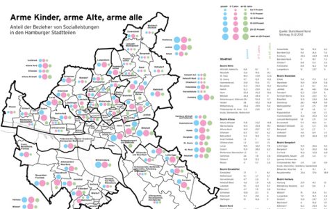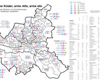 St. Pauli: 540, Hafencity: 0. Eine neue Statistik und unsere Karte zeigen, wie viele ältere Hamburger, wie viele Kinder und wie viele Menschen insgesamt in welchen Stadtteilen auf Sozialleistungen angewiesen sind. Schauen Sie nach: Wie arm sind die Menschen in Ihrem Quartier?