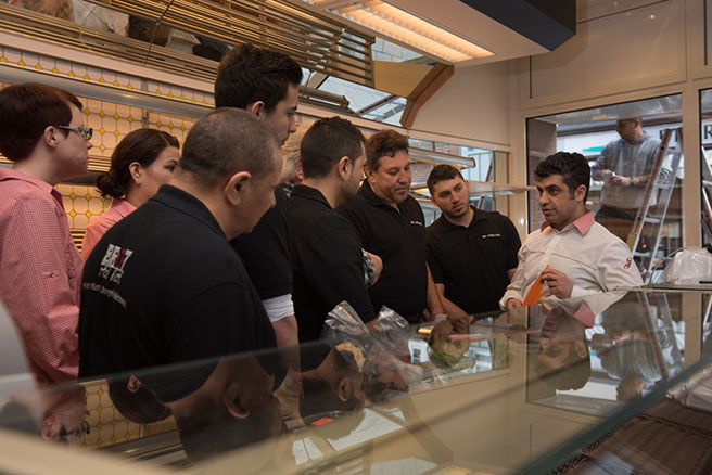 Unter der Aufsicht von Snack-Trainer Mohammad Masod belegt das gesamte Team zahlreiche Brötchen.