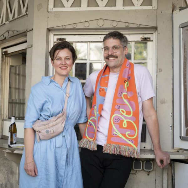 Cskw steht dabei für Christian Steubing, 44, und Kirstin Weppner, 43. Die beiden entwerfen für den Berliner Schöne-Sachen-Shop „Amore“ seit vier Jahren einzigartige Wendeschals im Design italienischer Fußballfan-Utensilien – nur dass ihre Werke mit dem Stadion gar nichts zu tun haben, sondern Statements sind für gute Laune und noch besseren Geschmack. Als Hinz&Kunzt nachfragen ließ, ob die beiden einen solchen Schal auch für die Freund:innen des Hamburger Straßenmagazins entwerfen könnten, sagten sie direkt zu. Und überlegten, wie sie dabei auch jenen gerecht werden können, die in der kalten Jahreszeit kein festes Dach über dem Kopf haben. „Unser Design soll im besten Fall eine essenzielle Botschaft vermitteln“, sagt Weppner, und Steubing fügt an: „Jeder Mensch möchte es doch gerne kuschelig und gemütlich haben im Winter. Wärme und Kälte – diese zwei Themen passen gerade hier sehr gut zusammen.“