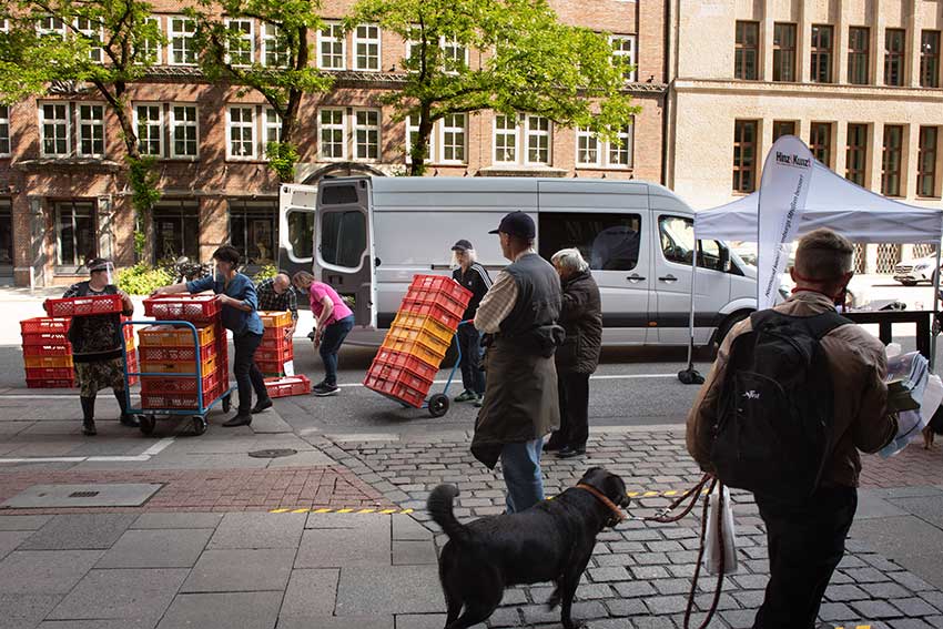 In den vergangenen Tagen ist viel Arbeit in die Vorbereitung des Verkaufsstarts geflossen. Das hat sich gelohnt: Die Hinz&Künztler erhalten Zeitkarten und holen sich die Magazine dann an drei verschiedenen Verkaufsfenstern ab. So können die nötigen Abstände eingehalten werden.