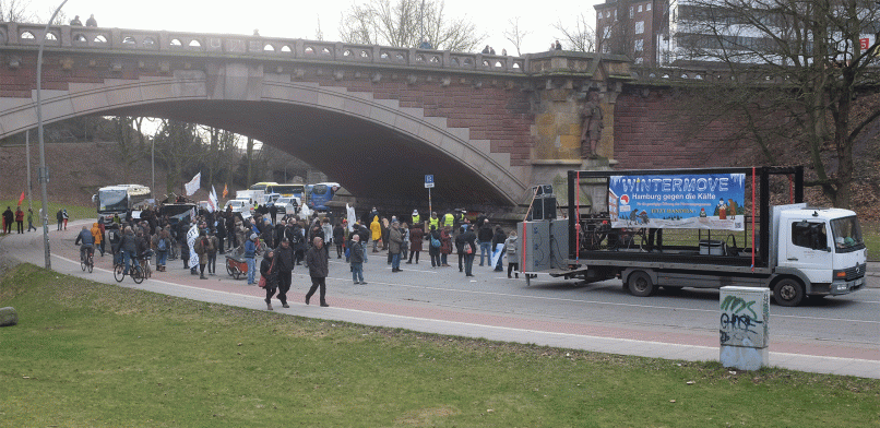 Mit der Demonstration wollten die Veranstalter der Forderung nach einer ganztägigen Öffnung des Winternotprogramms Nachdruck verleihen, denn bislang müssen die Obdachlosen die Notunterkünfte jeden Morgen wieder verlassen. Seit Jahren fordern Hinz&Kunzt, Diakonie und Caritas bereits die Ausweitung der Öffnungszeiten und auch die Bezirksversammlung Altona hat sich der Forderung kürzlich parteiübergreifend angeschlossen.