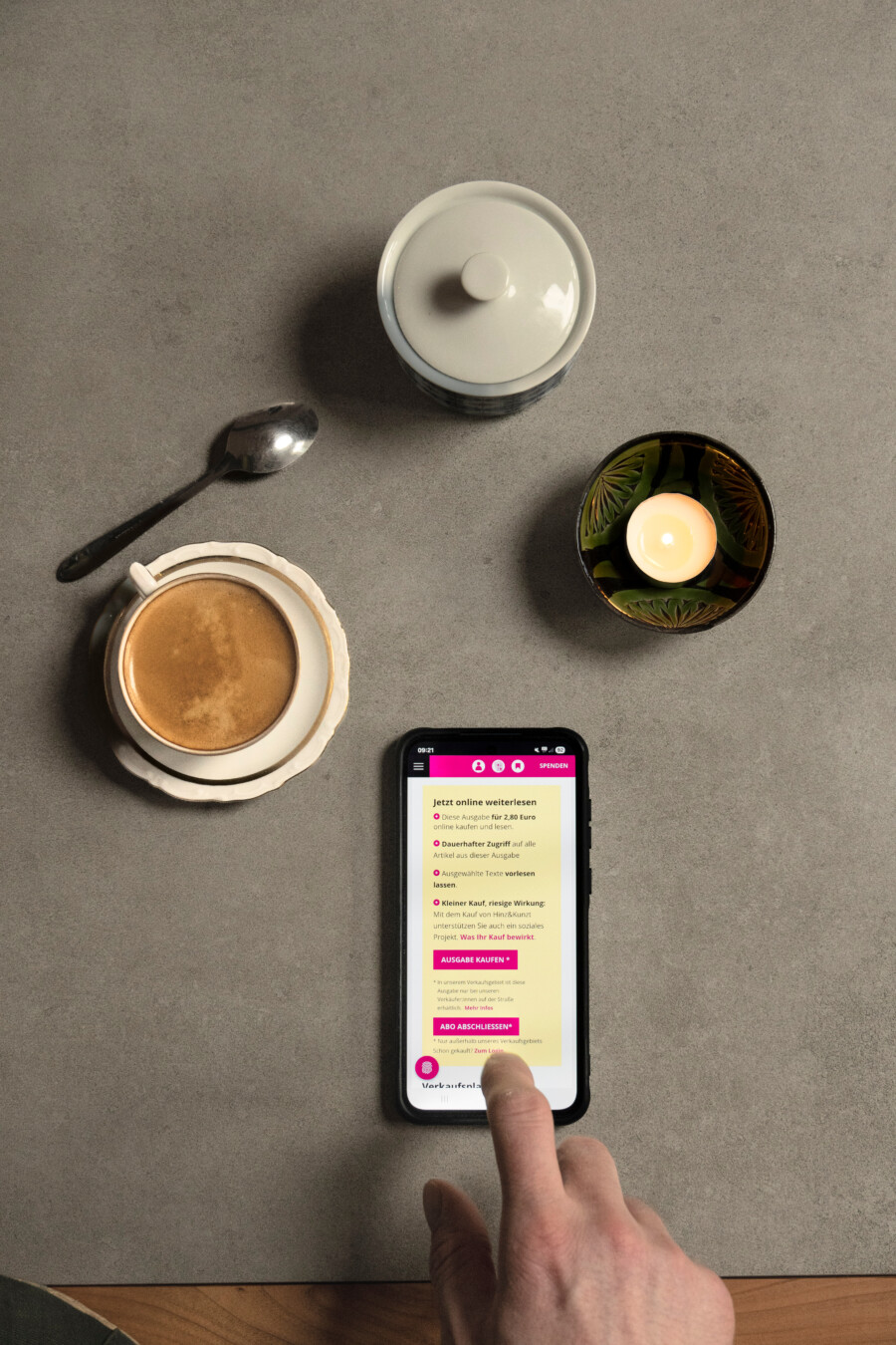 Auch wenn Sie mit einem Onlinekauf nicht direkt unsere Verkäufer:innen unterstützen, kommt ihnen das Geld dennoch zugute: Wir finanzieren damit unser breites Hilfsangebot inklusive Sozialarbeit. Und Sie stärken mit dem Kauf die Lobby für arme und obdachlose Menschen und unsere journalistische Arbeit.