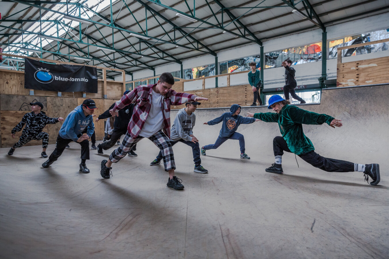 Ich habe schon immer gerne mit jungen Menschen gearbeitet, und wir Skater:innen sind ja ohnehin so etwas wie eine globale Gemeinschaft. Es gibt unter uns eine vorurteilsfreie Solidarität, wie man sie sonst im Leben kaum findet. Um „Wheels of Hope“ zu dokumentieren, reiste ich nach Berlin, wo ich seit zehn Jahren mehrere Monate im Jahr lebe, und fuhr von dort aus immer wieder mit dem Zug nach Hannover zum Fotografieren.