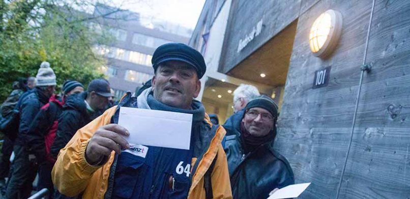 Auch einen der blauen Zettel – und damit einen sicheren Containerplatz – hat Krzysztof in seinem Briefumschlag. Glück im Unglück für den Hinz&Kunzt-Verkäufer, der vor wenigen Tagen seine Wohnung verlor. „Mein Mitbewohner hat die Miete nicht mehr zahlen können“, erzählt der gebürtige Pole. Die plötzliche Obdachlosigkeit konnte er nur abwenden, weil er einige Tage bei Bekannten schlief. „Jetzt habe ich erstmal einen Container in Altona. Das ist gut“, sagt der 59-Jährige, der ab jetzt immerhin fünf Monate Zeit hat, eine neue Bleibe für sich zu finden.