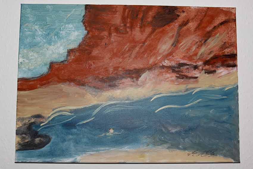 Und Uli Pforr freut sich: Seine Idee ist aufgegangen. Mit Traumbildern hat der Künstler schon Erfahrung. „Ich träume oft Horrorgeschichten, in denen ich verfolgt werde oder sterbe“, sagt er. Den Tod hat er selbst schon im Traum getroffen. Kristian dagegen begegnet er heute zum ersten Mal – und dennoch sehen sich die kleine Figur auf dem Bild und das Original ein bisschen ähnlich. Stark, findet Künstlerin Esther Czaya, als sie vor dem Gemälde stehen bleibt.