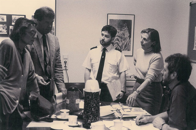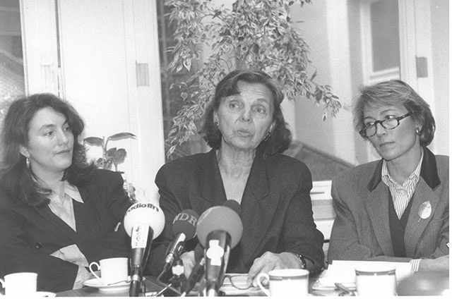 Ami Dose im Gespräch im Oktober 1994 – das Jahr, in dem sie die Hamburger Tafel gründete. Foto: Frederika Hoffmann.