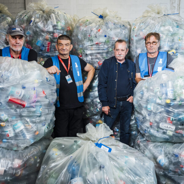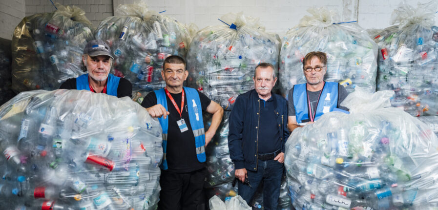 „Hier stehen vier alte Säcke – nur Herbert Kosecki fehlt“, scherzt Uwe Tröger. Dabei deutet der 58-Jährige nicht etwa auf die prall mit leeren Flaschen gefüllten Plastiksäcke, sondern auf sich und seine Kollegen Andrzej Fidala, Robert Fudro und Klaus Peterstorfer. Die ehemaligen Hinz&Kunzt-Verkäufer sind „Leergutbeauftragte“ am Hamburg Airport – und verdienen mit Pfandsammeln ihr Gehalt.