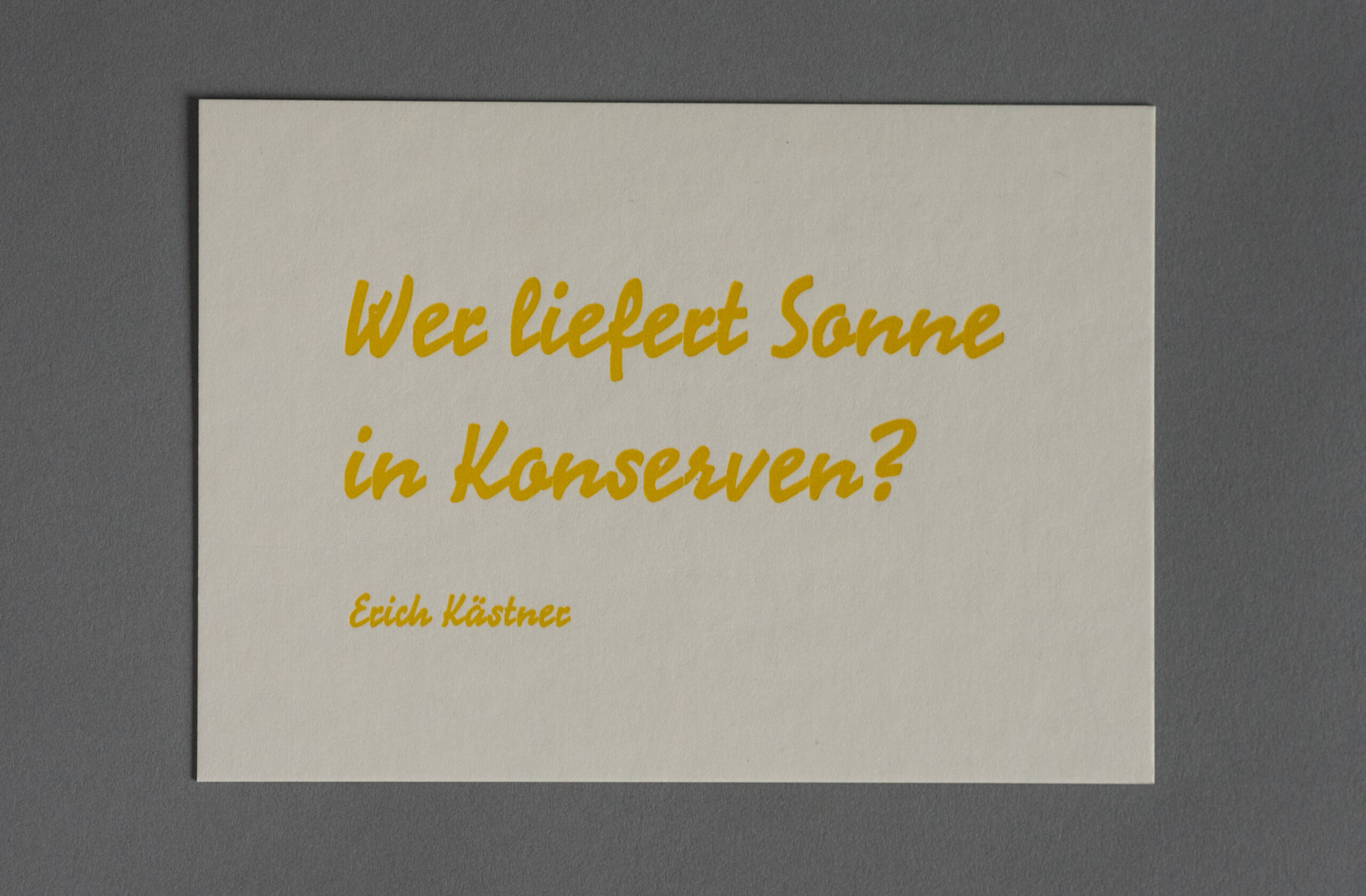 Die Postkarten aus handgeschöpftem Japankarton mit ausgewählten Zitaten zum Thema Arbeit kosten 1,50 Euro pro Stück. Erhältlich sind sie in den Museumsshops von Museum der Arbeit und Kunsthalle (mehr Verkaufsstellen folgen) oder unter www.artlit.de. Alle Erlöse gehen an Hinz&Kunzt.Dafür wurde der anstrengende Job aber auch gut bezahlt. Und interessant sei er noch dazu gewesen, sagen sie. Weil man so viel zu Lesen bekam – oft auch vor allen anderen. Traurig, dass ihr Beruf in den späten 1980er-Jahren ausstarb und Computer ihre Arbeit übernahmen, sind beide trotzdem nicht. „Das hat die Arbeit enorm erleichtert“, sagt Laufenberg.