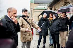 Sie kennen das Leben auf der Straße aus eigener Erfahrung und die Anlaufstellen, Schlafplätze und Gefahren in der Innenstadt. Der circa zweistündige Rundgang führt vorbei an Orten, die in keinem Reiseführer erwähnt werden: Wohnheim statt Hotel Atlantik, Tagesaufenthaltsstätte statt Alsterpavillon, Drogenberatungsstelle statt Passagenbummel.