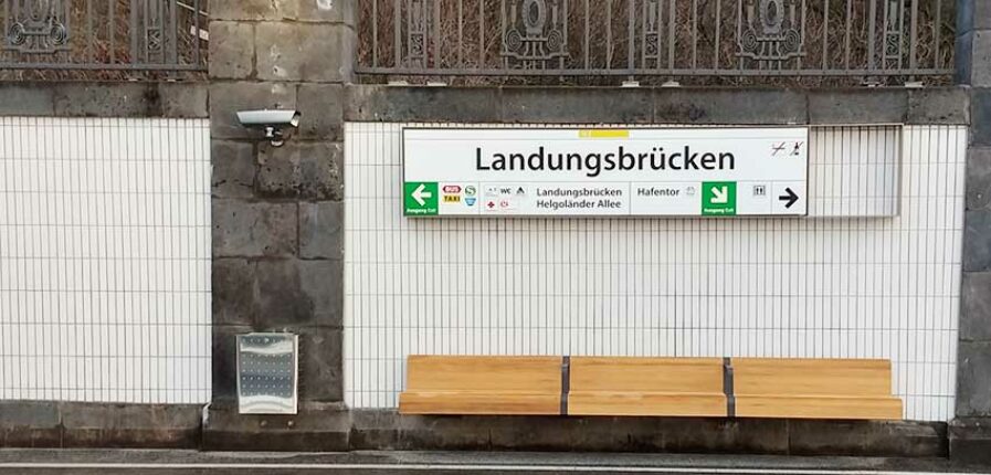 An der neuen U-Bahnhaltestelle Landungsbrücken sind die Sitzbänke so gestaltet, dass Obdachlose sich darauf nicht hinlegen können – Metallstreben verhindern das. Fahrgäste fänden das Sitzen so angenehmer, argumentiert die Hochbahn.