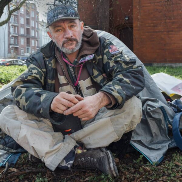 Die neue Unterkunft von Marian ist hellgrau und für einen großen Mann wie ihn sehr klein. „Hier schlafe ich ab heute Abend“, sagt der 50-Jährige an diesem Nachmittag im April und zeigt mit dem ausgestreckten Arm auf ein Kinderzelt, das er auf einem Grünstreifen unter Bäumen aufgebaut hat. Er hat es vom Mitarbeiter einer Tagesaufenthaltsstätte für Obdachlose geschenkt bekommen, erzählt der Hinz&Kunzt-Verkäufer, zusammen mit einem Schlafsack.