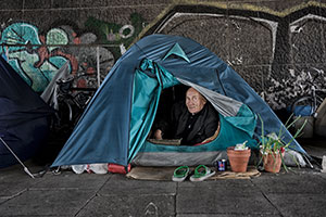 Wer sind die Menschen, die in unserer Stadt unter Brücken leben? Die Fotografin Lena Maja Wöhler hat einige der 2000 Obdachlosen getroffen. Heute im Porträt: Saitan, der unter der Kersten-Miles-Brücke lebt – und Gitarre spielt.