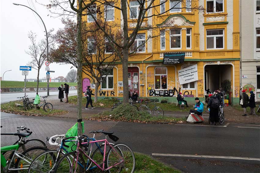 In Wilhelmsburg ist ein Streit um die Zukunft eines Hausprojekts entbrannt. Muss das Gebäude einer Deicherhöhung zum Opfer fallen? Foto: Daniel Müller.