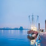 Wenige Meter entfernt sind Trubel und Party weit weg. Am Anleger unterhalb der Halle schaukelt sanft ein rot-weisser Kutter im Wasser, darüber kreisen kreischende Möwen. Fischer Jens Stoef, in blauem Kapuzenpulli und orange-gelber Gummilatzhose, schiebt eine letzte Plastikkiste auf den langen Holztisch, damit ist die Verkaufstheke an Bord seiner „Elvstint“ komplett. „Moin moin, Jens“, ruft ein Mann vom Steg runter. „Haste schon Krabben?“ – „Nee, nächste Woche vielleicht“, antwortet Stoef und stapelt Kistendeckel aufeinander. „Is alles büschen spät dies Jahr.“