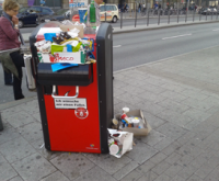 Die Stadtreinigung will versuchsweise an einigen Mülleimern in der Innenstadt Pfandregale anbringen. Zuvor wurde kritisiert, dass die neuen Mülleimer Pfandsammlern das Leben schwer machen, weil sie nicht mehr hinein greifen können.