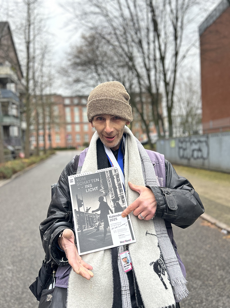 Der H&K-Jahreskalender 2025 kann bereits seit Mitte November 2024 für 6,80 Euro von den Hinz&Kunzt-Verkäufer:innen erworben werden, die Hälfte geht an die Verkäufer:innen.
