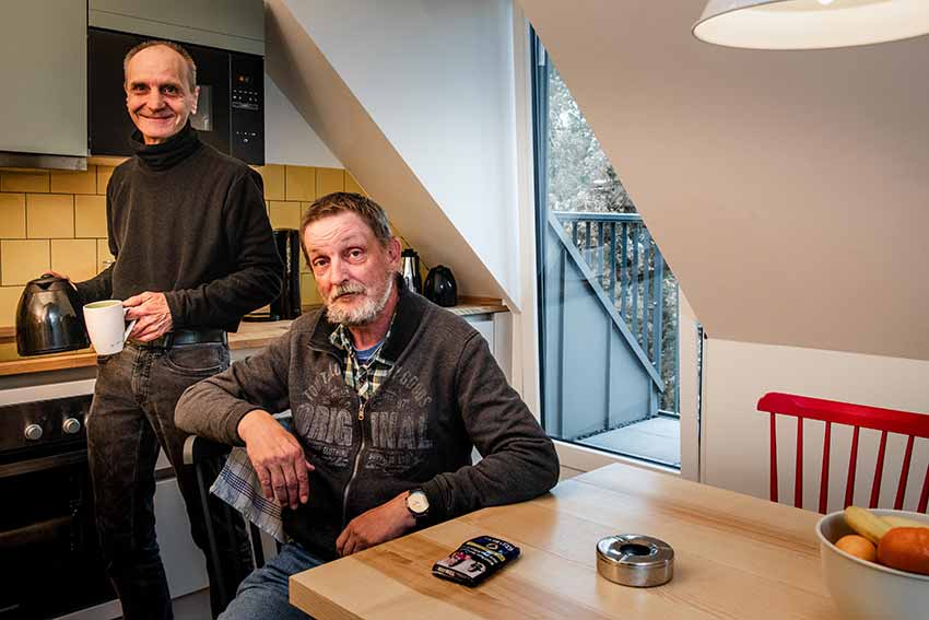 Fred hatte gleich etwas auszusetzen an seinem Zimmer. „Das Bett war verkehrt aufgebaut“, sagt der 56-Jährige. Dann grinst er. War wohl doch nicht so wichtig. „Ich bin froh, hier zu sein”, sagt er, nun ernst. „Alleine zu wohnen war noch nie meins. Da fällt mir die Decke auf den Kopf.“